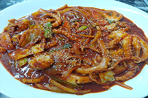 센 불에서 단숨에 볶아낸 불맛가득한 낙지볶음으로