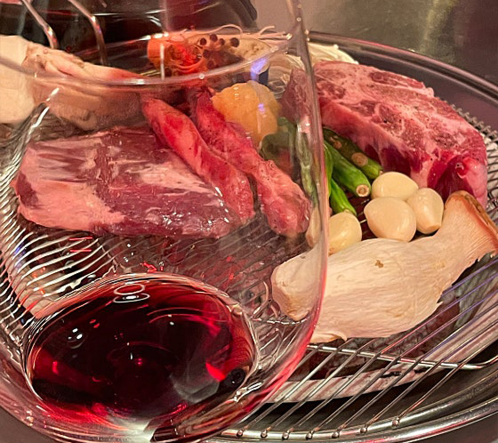"와인과 고기의 페어링이 놀랍도록 좋았습니다.