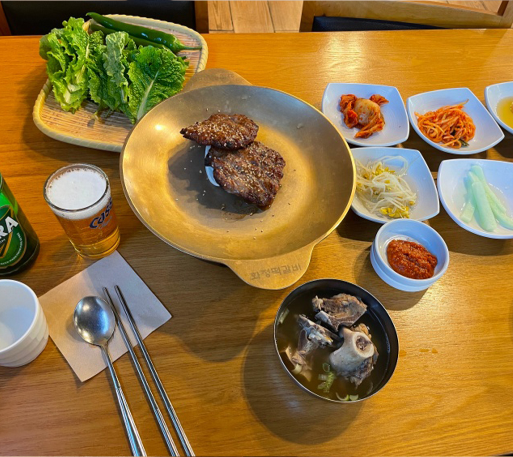 뼈국은 시원하고 담백한 맛으로 마무리하기 좋습니다. 다양한 쌈채소와 함께 즐기는 떡갈비는 온 가족이 좋아할 메뉴로