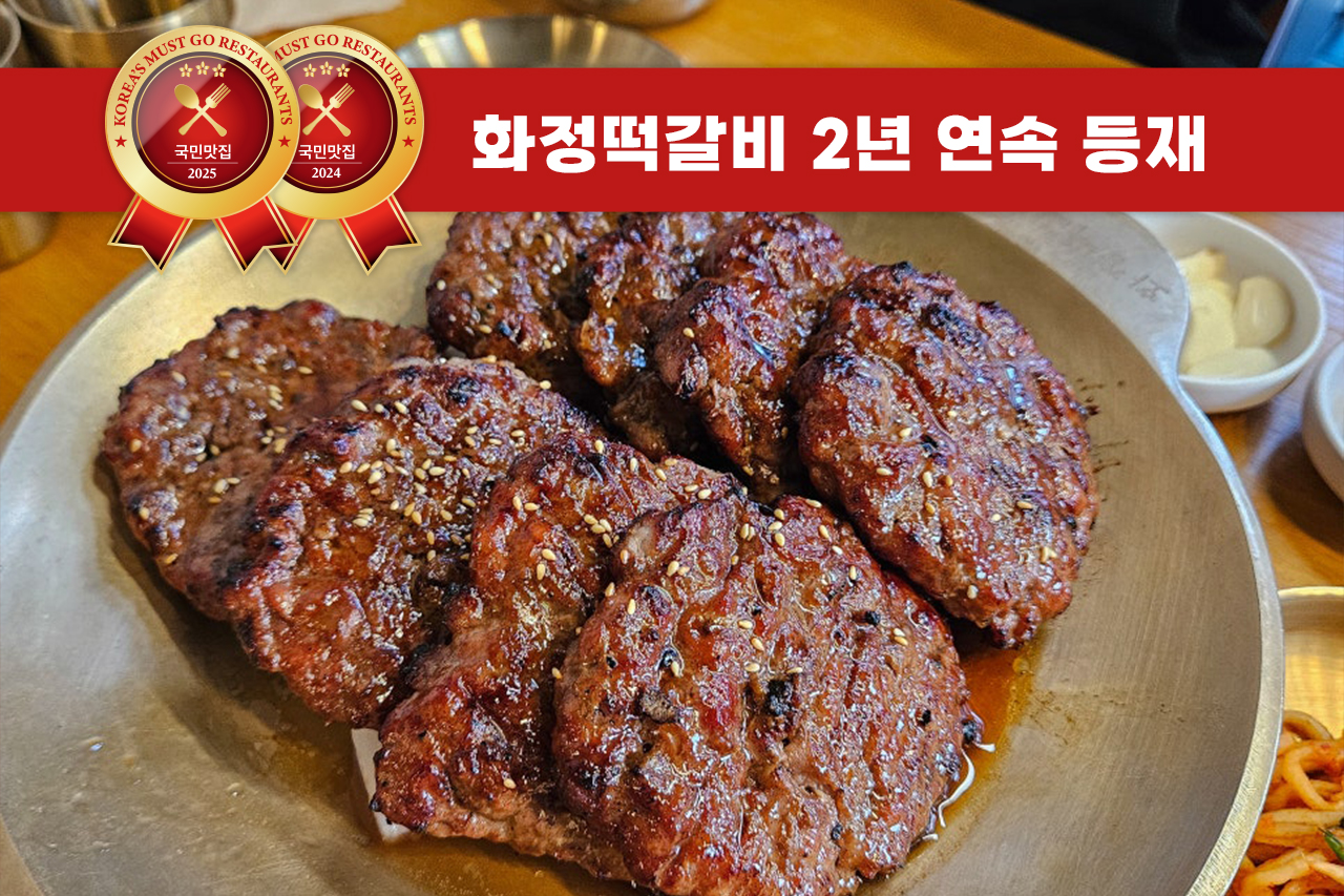 화정떡갈비는 광주 송정동 떡갈비 거리의 원조 맛집으로, 한우와 소고기를 섞어 만든 떡갈비는 그 육즙과 부드러운 식감으로