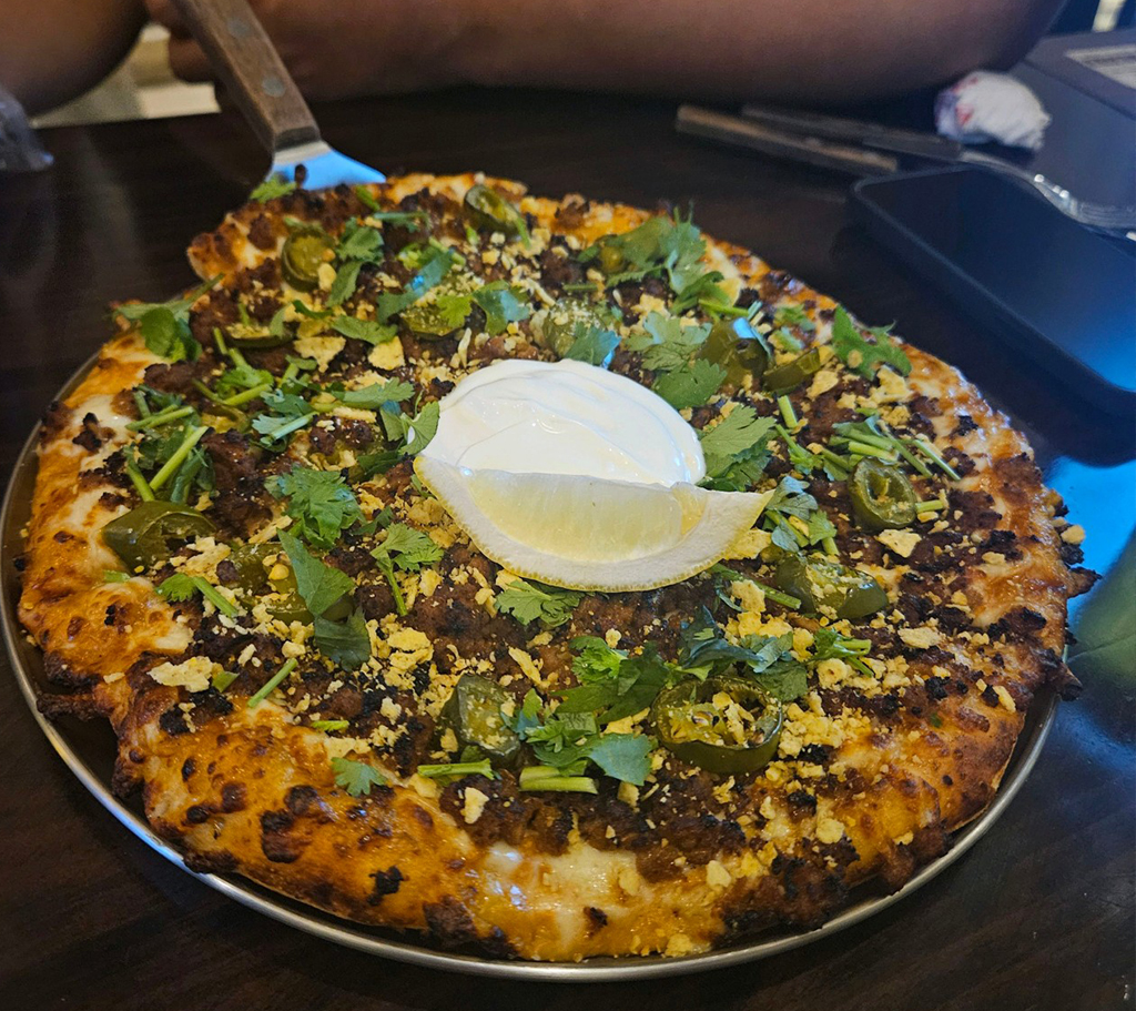 나초칩 그리고 고수가 올라간 유니크한 멕시코 피자